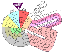 In 1867, Gustavus Hinrichs, a Danish born academic chemist based in America, published a spiral periodic system based on atomic spectra and weights, and chemical similarities. His work was regarded as idiosyncratic, ostentatious and labyrinthine and this may have militated against its recognition and acceptance.