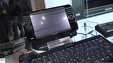 The ultra-mobile PC (UMPC) is a specification for a small form factor of tablet PCs. It was developed as a joint development exercise by Microsoft, Intel, and Samsung, among others. Current UMPCs typically feature the Windows XP, Windows Vista, Windows 7, or Linux operating system and low-voltage Intel Atom or VIA C7-M processors.