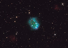 A planetary nebula, more correctly known as a stellar-remnant nebula , is an emission nebula consisting of an expanding glowing shell of ionized gas ejected during the asymptotic giant branch phase of certain types of stars late in their life. The term for this class of objects is a misnomer that originated in the 1780s with astronomer William Herschel, because when viewed through his telescope, these objects were somewhat similar in appearance to Uranus, the planet which he had recently discovered. Herschel's name for these objects was adopted by astronomers and has not been changed, even though planetary nebulae are unrelated to the planets of the solar system. They are a relatively short-lived phenomenon, lasting a few tens of thousands of years, compared to a typical stellar lifetime of several billion years.