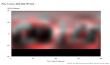![]() Computer-generated map of Pluto from Hubble images, synthesized true colour and among the highest resolutions possible with current technology.  |
