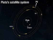 On July 20, 2011 Mark R. Showalter of the SETI Institute announced the discovery of a fourth moon of Pluto, provisionally named S/2011 (134340) 1 or P4. It was noticed by NASA's Hubble Space Telescope during a survey searching for rings around the dwarf planet. It has an estimated diameter of 13 to 34 km and is located between the orbits of Nix and Hydra.
