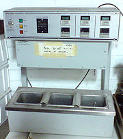 At the core of the PCR method is the use of a suitable DNA polymerase able to withstand the high temperatures of >90°C (>195°F) required for separation of the two DNA strands in the DNA double helix after each replication cycle. The DNA polymerases initially employed for in vitro experiments presaging PCR were unable to withstand these high temperatures. So the early procedures for DNA replication were very inefficient, time consuming, and required large amounts of DNA polymerase and continual handling throughout the process.