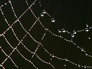 Water has a high surface tension caused by the strong cohesion between water molecules. This can be seen when small quantities of water are put onto a non-soluble surface such as polythene; the water stays together as drops. Just as significantly, air trapped in surface disturbances forms bubbles, which sometimes last long enough to transfer gas molecules to the water. Another surface tension effect is capillary waves which are the surface ripples that form from around the impact of drops on water surfaces, and some times occur with strong subsurface currents flow to the water surface. The apparent elasticity caused by surface tension drives the waves.