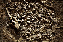 An extremely well preserved specimen found in the Yixian Formation of Liaoning Province, China provides some of the best evidence for parental care in dinosaurs. This specimen consists of an adult Psittacosaurus (not assigned to any particular species), which is closely associated with 34 articulated juvenile skeletons, all preserved in three dimensions. The young Psittacosaurus, all approximately the same age, are intertwined in a group underneath the adult, although all 34 skulls are positioned above the mass of bodies, as they would have been in life. This suggests that the animals were alive at the time of burial, which must have been extremely rapid, perhaps due to the collapse of a burrow.