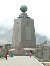 La Mitad del Mundo (the middle of the world) is a small village administered by the prefecture of the province of Pichincha, 35 kilometres (22 mi) north of Quito. It has since been determined, with the use of Global Positioning System technology, that the actual equator is some 240 metres (790 ft) north of the monument area.