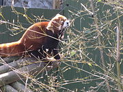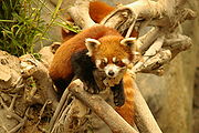 The Red Panda, also called the Firefox or Lesser Panda (taxonomic name: Ailurus fulgens, "shining cat"), is a mostly herbivorous mammal, specialized as a bamboo feeder. It is slightly larger than a domestic cat.