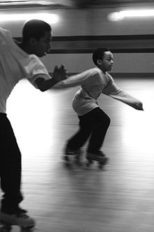 Roller skating is the traveling on surfaces with roller skates. It is a form of recreational activity as well as a sport, and can also be a form of transportation. Skates generally come in three basic varieties: quad roller skates, inline skates or blades and tri-skates, though some have experimented with a single-wheeled "quintessence skate" or other variations on the basic skate design. In America, this hobby was most popular in the 1970s and the 1990s.