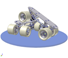 - Orbit wheel skates, another spiritual relative of the freeline skate whereby the skate stands on a grip-tape-surfaced platform (just slightly larger than a freeline skate's) inside of a large hoop that contains a trapped wheel that can freely rotate under the grip plate each foot is planted on. The foot plates normally rest on the trough of the inner surface of these orbital wheels, with the toes pointing orthogonal to the rotation of the ringed wheel. It's said the experience of riding them is somewhat similar to skateboarding, and there are variants with the two wheels connected so the rider is fixed in a skateboarding-like stance.
