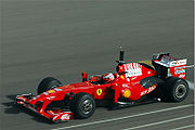 A Shell-sponsored Ferrari F60 Formula One motor racing car