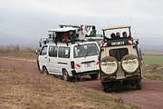 A safari (pronounced /səˈfɑri/) is an overland journey, usually a trip by tourists to Africa, traditionally for a big-game hunt; today the term often refers to a trip taken not for the purposes of hunting, but to observe and photograph animals and other wildlife. There is a certain theme or style associated with the word, which includes khaki clothing, belted bush jackets, pith helmets or slouch hats, and animal skins—like leopard's skin.
