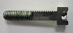 | stove bolt | A stove bolt is a type of machine screw that has a round or flat head and is threaded to the head. They are usually made of low grade steel, have a slot or Phillips drive, and are used to join sheet metal parts using a hex or square nut. | ||