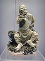 Blue underglaze statue of a man with his pipe, from Jingdezhen, Ming Dynasty (1368-1644)