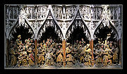 The arrival of European Catholic culture readily adapted local skills to the prevailing Baroque style, producing enormously elaborate retablos and other mostly church sculptures in a variety of hybrid styles. The most famous of such examples in Canada is the altar area of the Notre Dame Basilica in Montreal, Quebec, which was carved by peasant habitant labourers. Later, artists trained in the Western academic tradition followed European styles until in the late nineteenth century they began to draw again on indigenous influences, notably in the Mexican baroque grotesque style known as Churrigueresque. Aboriginal peoples also adapted church sculpture in variations on Carpenter Gothic; one famous example is the Church of the Holy Cross in Skookumchuck Hot Springs, British Columbia.