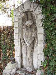 Countless paintings and sculptures were made, often under governmental sponsorship. Most Japanese sculpture is associated with religion, and the medium' use declined with the lessening importance of traditional Buddhism. During the Kofun period of the third century, clay sculptures called haniwa were erected outside tombs. Inside the Kondo at Hōryū-ji is a Shaka Trinity (623), the historical Buddha flanked by two bodhisattvas and also the Guardian Kings of the Four Directions. The wooden image ( 9th c.) of Shakyamuni, the "historic" Buddha, enshrined in a secondary building at the Murō-ji, is typical of the early Heian sculpture, with its ponderous body, covered by thick drapery folds carved in the hompa-shiki (rolling-wave) style, and its austere, withdrawn facial expression. The Kei school of sculptors, particularly Unkei, created a new, more realistic style of sculpture.