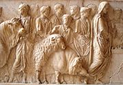 Sheep play an important role in all the Abrahamic faiths; Abraham, Isaac, Jacob, Moses, and King David were all shepherds. Sheep are also the first animals mentioned in the Old Testament. According to the story of the Binding of Isaac, a ram is sacrificed as a substitute for Isaac after an angel stays Abraham's hand. Eid ul-Adha is a major annual festival in Islam in which sheep (or other animals) are sacrificed in remembrance of this act. Greeks and Romans also sacrificed sheep regularly in religious practice, and Judaism also once sacrificed sheep as part of the Korban. Ovine symbols—such as the Passover lamb and the ceremonial blowing of a shofar—still find a presence in modern Judaic traditions. In Christianity, a congregation is often referred to as a flock, and sheep are an element in the Christian iconography of the birth of Jesus. Christ is also portrayed as the Sacrificial lamb of God ( Agnus Dei) and Easter celebrations in Greece and Romania traditionally feature a meal of Paschal lamb.