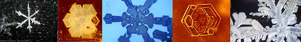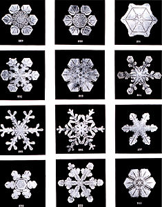 There is a widely held belief that no two snowflakes are alike. Strictly speaking, it is extremely unlikely for any two macroscopic objects in the universe to contain an identical molecular structure; but there are, nonetheless, no known scientific laws that prevent it. In a more pragmatic sense, it's more likely—albeit not much more—that two snowflakes are virtually identical if their environments were similar enough, either because they grew very near one another, or simply by chance. The American Meteorological Society has reported that matching snow crystals were discovered in Wisconsin in 1988 by Nancy Knight of the National Centre for Atmospheric Research. The crystals were not flakes in the usual sense but rather hollow hexagonal prisms.