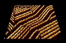Because solids have thermal energy, their atoms vibrate about fixed mean positions within the ordered (or disordered) lattice. The spectrum of lattice vibrations in a crystalline or glassy network provides the foundation for the kinetic theory of solids. This motion occurs at the atomic level, and thus cannot be observed or detected without highly specialized equipment, such as that used in spectroscopy.