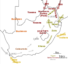 Modern humans have inhabited Southern Africa for at least 170,000 years. At the time of European contact, the dominant indigenous peoples were Bantu-speaking peoples who had migrated from other parts of Africa about one thousand years before. The two major historic groups were the Xhosa and Zulu peoples.