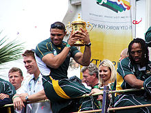 The Springboks in a bus parade after winning the 2007 Rugby World Cup