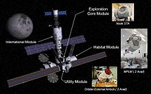 • In December 2011 Boeing proposed using Node 4 as the core of an Exploration Gateway Platform to be constructed at the ISS and relocated via space tug to an Earth-Moon Lagrange point (EML-1 or 2). The purpose of the platform would be to support lunar landing missions with a reusable lunar lander after the first two SLS flights. It would also bypass the need for a L1 propellant depot for lunar missions. Other hardware would include an airlock, an 'international module', and a MPLM based habitat module.