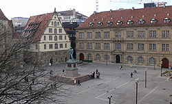 - Alte Kanzlei (the Old Chancellery) on Schillerplatz square which backs onto the 1598 Mercury Pillar