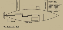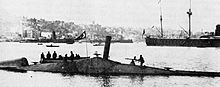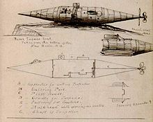 The 1862 Alligator, first submarine of the United States Navy. It was designed by the French engineer, Brutus de Villeroi.