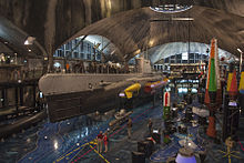 U-995, Type VIIC/41 U-Boat of WWII, showing the typical combination of ship-like non-watertight outer hull with bulky strong hull below