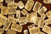 Sugar is a class of edible crystalline substances including sucrose, lactose, and fructose. Common table sugar (sucrose) is made from sugar beets or sugar cane. Human taste buds interpret its flavor as sweet. Sugar as a basic food carbohydrate primarily comes from sugar cane and from sugar beet, but also appears in fruit, honey, sorghum, sugar maple (in maple syrup), and in many other sources. It forms the main ingredient in much candy. "Excessive" consumption of sugar has been associated with increased incidences of type 2 diabetes, obesity and tooth decay.