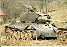 ![]() A T-34-85 tank on display at Musée des Blindés in April 2007.  |