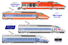 Originally the sets were built to run at 270 km/h (170 mph) but most were upgraded to 300 km/h (190 mph) during mid-life refurbishment in preparation for the opening of the LGV Méditerranée. The few sets that still have a maximum speed of 270 km/h operate on those routes that include a comparatively short distance on LGV, such as to Switzerland via Dijon. SNCF did not consider it financially worthwhile to upgrade their speed for a marginal reduction in journey time.