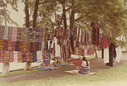 Textiles are often dyed, with fabrics available in almost every colour. The dying process often requires several dozen gallons of water for each pound of clothing. Coloured designs in textiles can be created by weaving together fibres of different colours ( tartan or Uzbek Ikat), adding coloured stitches to finished fabric ( embroidery), creating patterns by resist dyeing methods, tying off areas of cloth and dyeing the rest ( tie-dyeing), or drawing wax designs on cloth and dyeing in between them ( batik), or using various printing processes on finished fabric. Woodblock printing, still used in India and elsewhere today, is the oldest of these dating back to at least 220CE in China. Textiles are also sometimes bleached, making the textile pale or white.