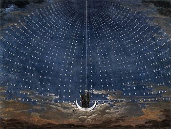 The traitorous Monostatos appears with the Queen of the Night and her ladies to destroy the temple ("Nur stille, stille"), but they are magically cast out into eternal night.