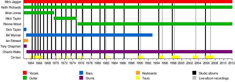 | Past members |  Brian Jones Ian Stewart Bill Wyman Mick Taylor Dick Taylor Tony Chapman  |