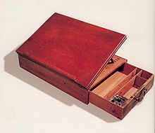 Jefferson invented many small practical devices and improved contemporary inventions. These include the design for a revolving book-stand to hold five volumes at once to be viewed by the reader. Another was the "Great Clock", powered by the Earth's gravitational pull on Revolutionary War cannonballs. Its chime on Monticello's roof could be heard as far as the University of Virginia. Louis Leschot, a machinist, aided Jefferson with the clock. Jefferson invented a 6 in (15 cm) long coded wooden cipher wheel, mounted on a metal spindle, to keep secure State Department messages while he was Secretary of State. The messages were scrambled and unscrambled by 26 alphabet letters on each circular segment of the wheel. He improved the moldboard plow and the polygraph, in collaboration with Charles Willson Peale.