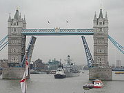 Tower Bridge is a combined bascule and suspension bridge in London, England over the River Thames. It is close to the Tower of London, which gives it its name. It has become an iconic symbol of London. Tower Bridge is one of several London bridges owned and maintained by the City Bridge Trust, a charitable trust overseen by the City of London Corporation.