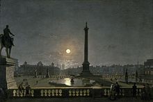 This painting (c. 1865) by Edward Pether is southwards across Trafalgar Square, with the towers of the Houses of Parliament on the skyline