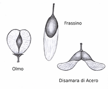 Wind dispersed seed of elm (Ulmus), ash (Fraxinus) and sycamore ( Acer pseudoplatanus)