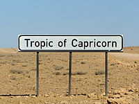 The position of the Tropic of Capricorn is not fixed, but varies in a complex manner over time; see under circles of latitude for information.