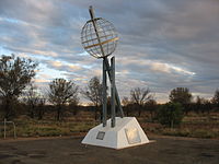 The Tropic of Capricorn, or Southern tropic, is one of the five major circles of latitude that mark maps of the Earth. It lies 23° 26′ 22″ south of the Equator, and marks the most southerly latitude at which the sun can appear directly overhead at noon. This event occurs at the December solstice, when the southern hemisphere is tilted towards the sun to its maximum extent.