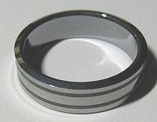 The jewelry industry makes rings of sintered tungsten carbide, tungsten carbide/metal composites, and also metallic tungsten. Sometimes manufacturers or retailers refer to tungsten carbide as a metal, but it is a ceramic. Because of tungsten carbide's hardness, rings made of this material are extremely abrasion resistant, and will hold a burnished finish longer than rings made of metallic tungsten. Tungsten carbide rings are brittle, however, and may crack under a sharp blow.