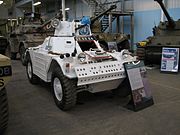 A British armoured car painted as it appeared while deployed on a UN peacekeeping mission.