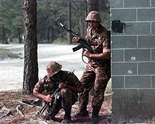 Uzbek troops during a cooperative operation exercise.