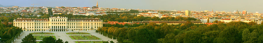 Panoramic view of Schönbrunn Palace with Vienna in the Background