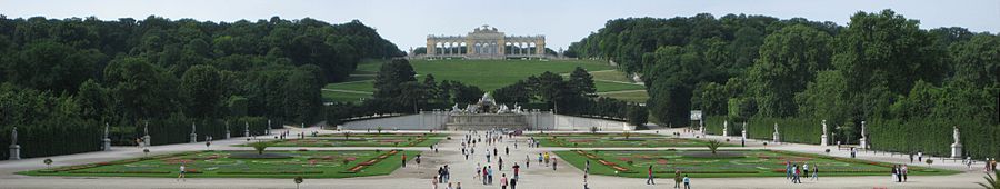 Panoramic view towards the world famous Gloriette at the Schönbrunn Palace
