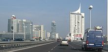UN complex in Vienna, with the Austria Centre Vienna in front, taken from the Danube Tower in the nearby Donaupark before the extensive building work