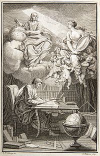 In the frontispiece to her translation of Newton, Émilie du Châtelet appears as Voltaire's muse, reflecting Newton's heavenly insights down to Voltaire.