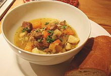Traditional dishes include laverbread (made from laver (Porphyra umbilicalis), an edible seaweed); bara brith (fruit bread); Cawl (a lamb stew); cawl cennin ( leek soup); Welsh cakes; and Welsh lamb. Cockles are sometimes served as a traditional breakfast with bacon and laverbread.