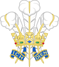 The Prince of Wales' heraldic badge is also sometimes used to symbolise Wales. The badge, known as the Prince of Wales's feathers, consists of three white feathers emerging from a gold coronet. A ribbon below the coronet bears the German motto Ich dien (I serve). Several Welsh representative teams, including the Welsh rugby union, and Welsh regiments in the British Army (the Royal Welsh, for example) use the badge, or a stylised version of it. The Prince of Wales has claimed that only he has the authority to use the symbol.