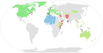 - Pakistan: Between 1467 and 2334 people were killed in U.S. drone attacks as of 6 May 2011.