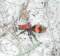 The most familiar wasps belong to Aculeata, a division of Apocrita, whose ovipositors are adapted into a venomous stinger. Aculeata also contains ants and bees. In this respect, insects called "velvet ants" (the family Mutillidae) are technically wasps.